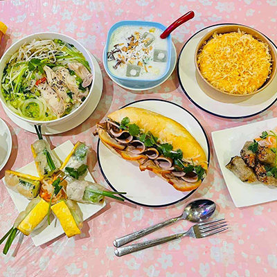 4 loại bánh mì, chả Việt, cay, thịt heo quay và thập cẩm. Tôi thấy một số người Việt Nam ăn phở ngon bên trong và gọi món phở bò. Ăn kèm với tỏi ngâm, tương ớt, v.v. cho vừa miệng. Nhiều rau và nhiều thịt. Chiếc bánh mì cỡ nửa và đồ uống yêu thích của bạn có giá 899 yên. Tôi cảm thấy giống Huế.